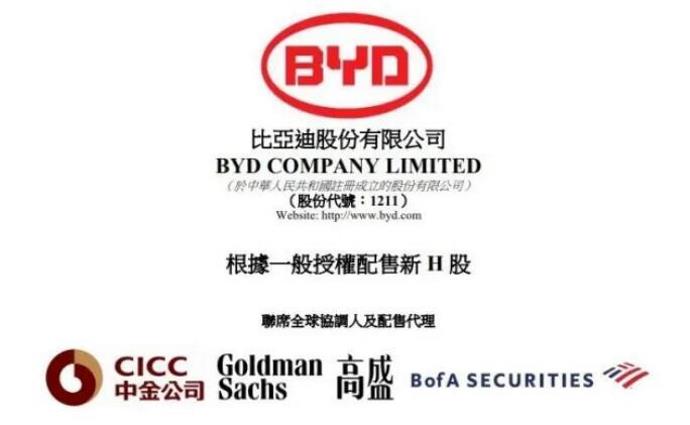 比亚迪股份发布公告表示,将发行本公司注册资本中每股面值人民币1元的5000万股新H股。每股配售股份的配售价276.0港元,其表示如果所发行股份全部配售,预计所筹金额约138亿港元,净融资137.44亿港元。