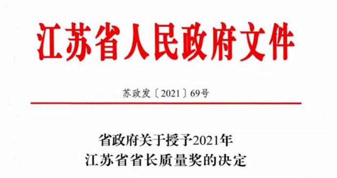 完整榜单如下:江苏省省长质量奖(共10个)