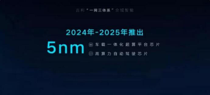 2024到2025年,吉利汽车会陆续推出5纳米的车载一体化超算平台芯片,以及高算力自动驾驶芯片,算力达到256TOPS。到2025年,实现L4级自动驾驶的商业化,完全掌握L5级自动驾驶。