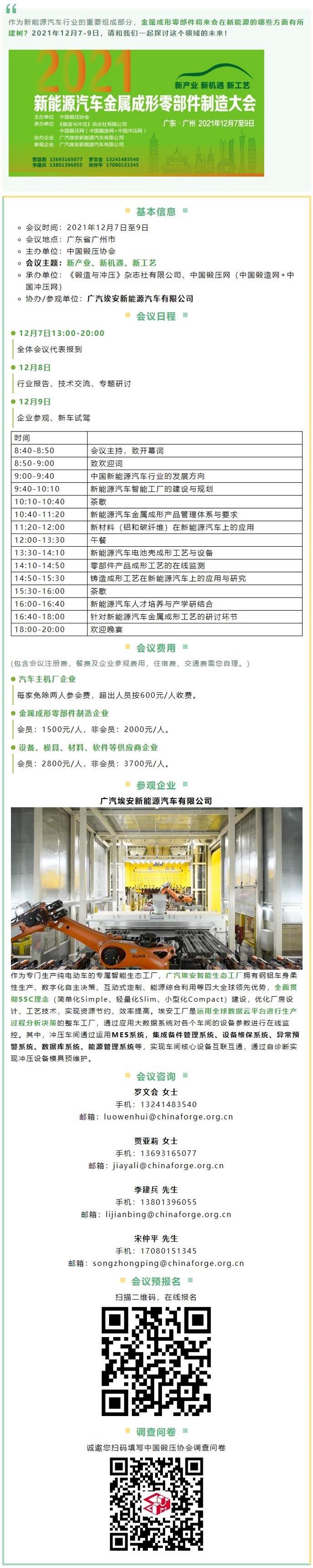 作为新能源汽车行业的重要组成部分,金属成形零部件将来会在新能源的哪些方面有所建树?2021年12月7-9日,请和我们一起探讨这个领域的未来!