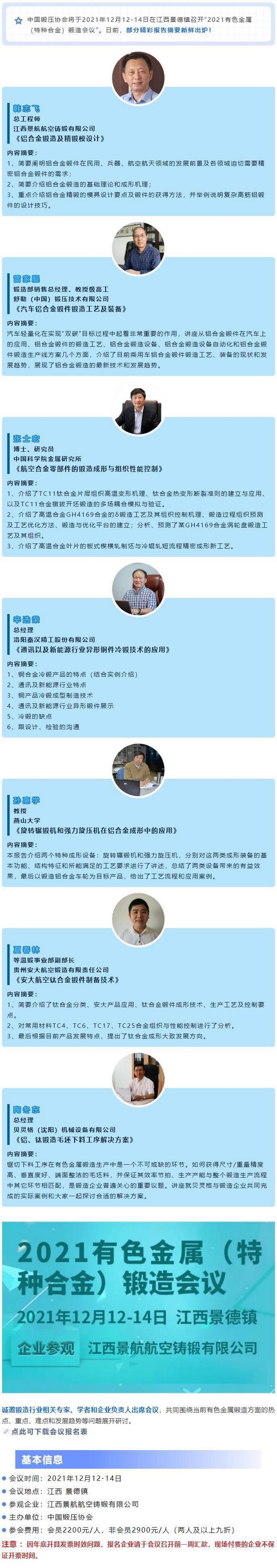 将于2021年12月12-14日在江西景德镇召开“2021有色金属(特种合金)锻造会议”。日前,部分精彩报告摘要新鲜出炉!