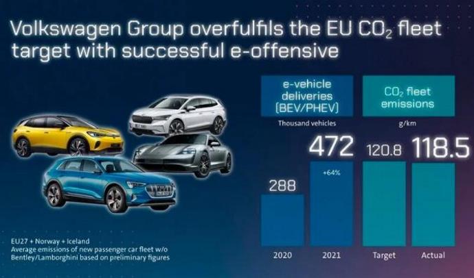 据外媒报道,大众集团表示,在电动汽车强劲销量的推动下,该公司在2021年实现了欧洲二氧化碳排放的法定目标。