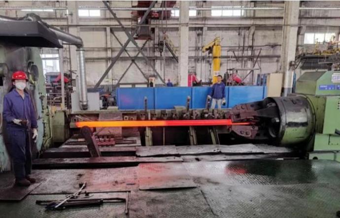 生产过程中,技术攻关小组围绕降低超长工件热弯曲、高温淬火开展攻关。经过与客户的咨询沟通,获取到“201不锈钢材料”的准确参数,通过在锻造生产现场自行设计淬火槽,对超长锻件及时进行淬火作业,保证了淬火速度;通过加固红料槽锻件加工保护,提高锻造速度、解决了超长工件热弯曲的难题,实现了新产品顺利产出。