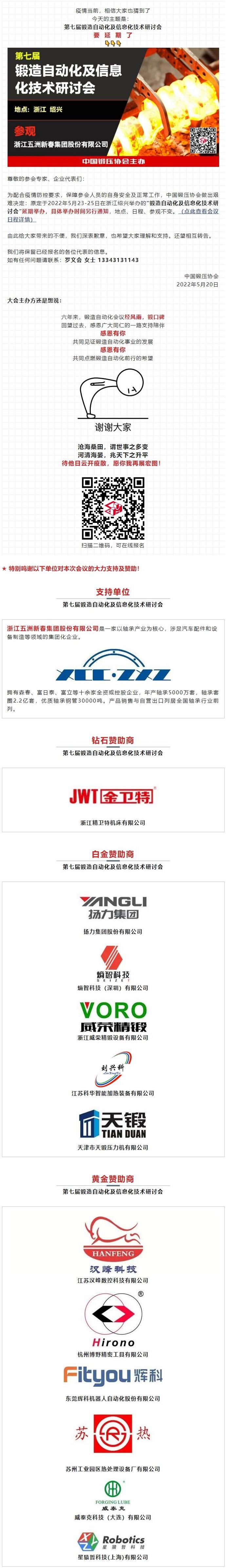 疫情当前,相信大家也猜到了,今天的主题是: 第七届锻造自动化及信息化技术研讨会要延期了