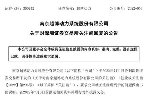 近日,汽车动力总成供应商越博动力(SZ300742,股价15.75元,市值22亿元)成立新能源子公司的议案引发了深交所的监管关注。