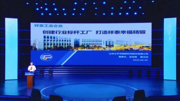 6月30日下午,泰州市“祥泰”系列创建品牌发布暨授牌仪式在市广播电视台800平米演播厅举行,市委常委、常务副市长刘浩出席并致辞。经过评选,精锻科技获评“祥泰工业企业”称号,公司董事长夏汉关代表祥泰工业企业作表态发言。