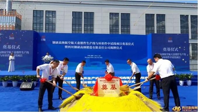 7月28日,钢研高纳航空航天盘锻件生产线与环形件中试线项目奠基仪式暨四川钢研高纳锻造有限责任公司揭牌仪式在德阳经开区举行。