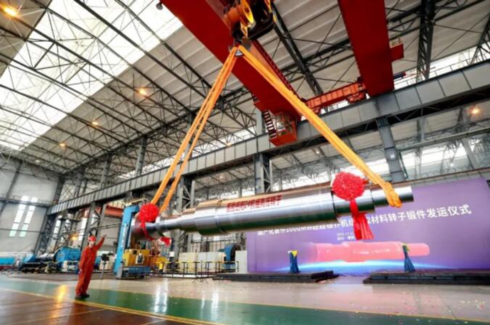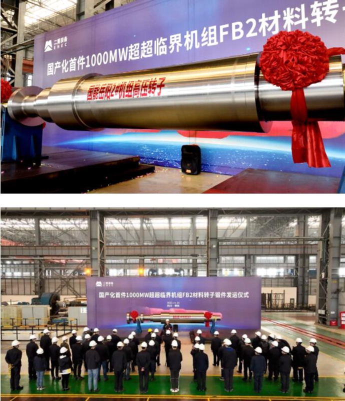 11月11日,国机重装二重装备研制的国产化首件1000MW超超临界机组FB2转子锻件成功发运。