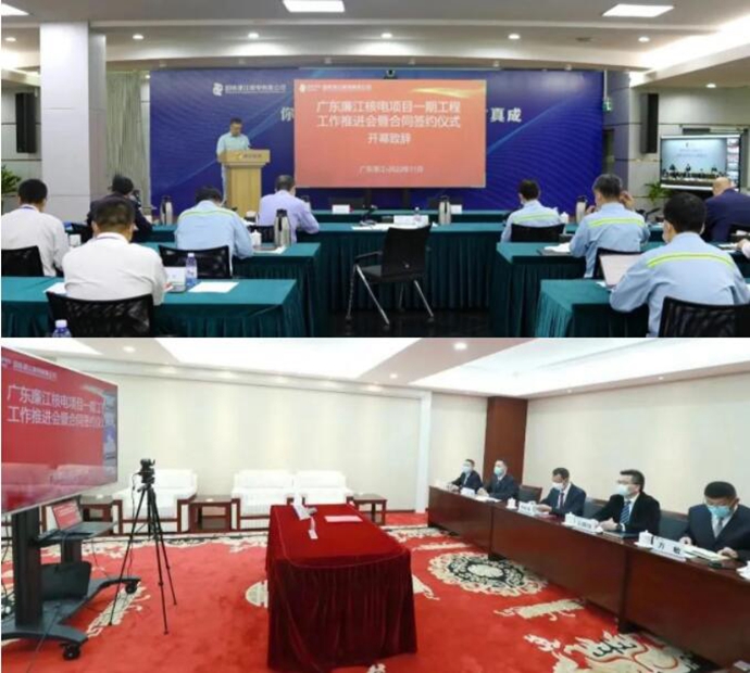 本次签约由国家电投党组成员、副总经理,上海核工程研究设计院有限公司(简称上海核工院)党委书记、董事长卢洪早,国机重装党委书记、董事长、总经理,二重装备党委书记、董事长韩晓军,国家电投国核湛江核电有限公司党委书记、董事长、总经理张震,上海核工院总经理王明弹,国机重装党委委员、副总经理,二重装备总经理、党委副书记王晖球的共同见证。