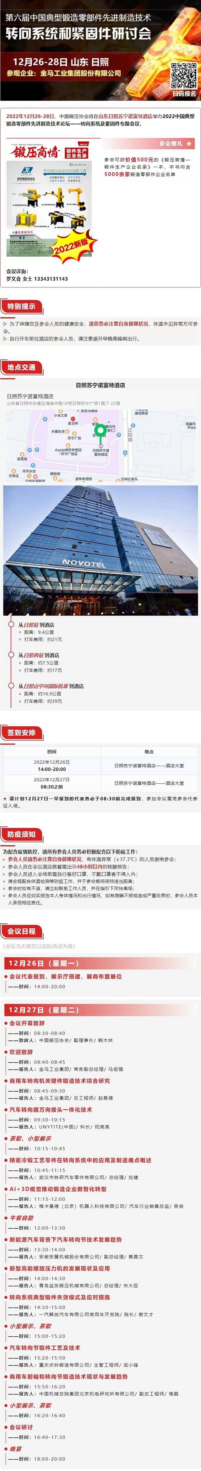 2022年12月26-28日, 将在山东日照苏宁诺富特酒店举办2022中国典型锻造零部件先进制造技术论坛——转向系统及紧固件专题会议。