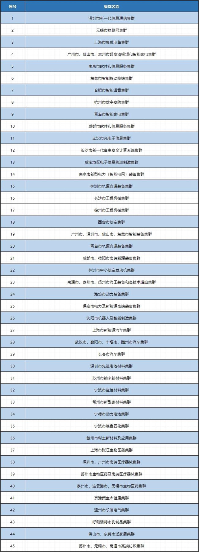 近日,工业和信息化部正式公布45个国家先进制造集群的名单。