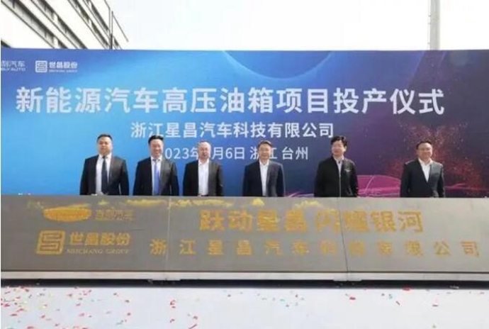 浙江星昌汽车科技有限公司是由吉利汽车集团旗下吉创产业发展与河北世昌汽车部件股份有限公司共同出资成立的一家合资公司,专业从事汽车系统部件研发、制造和销售,主要产品为新能源汽车高压油箱。