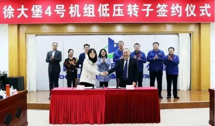 3月8日,中国一重与上海电气电站设备有限公司上海汽轮机厂徐大堡4#机组低压转子签约仪式在富拉尔基隆重举行。
