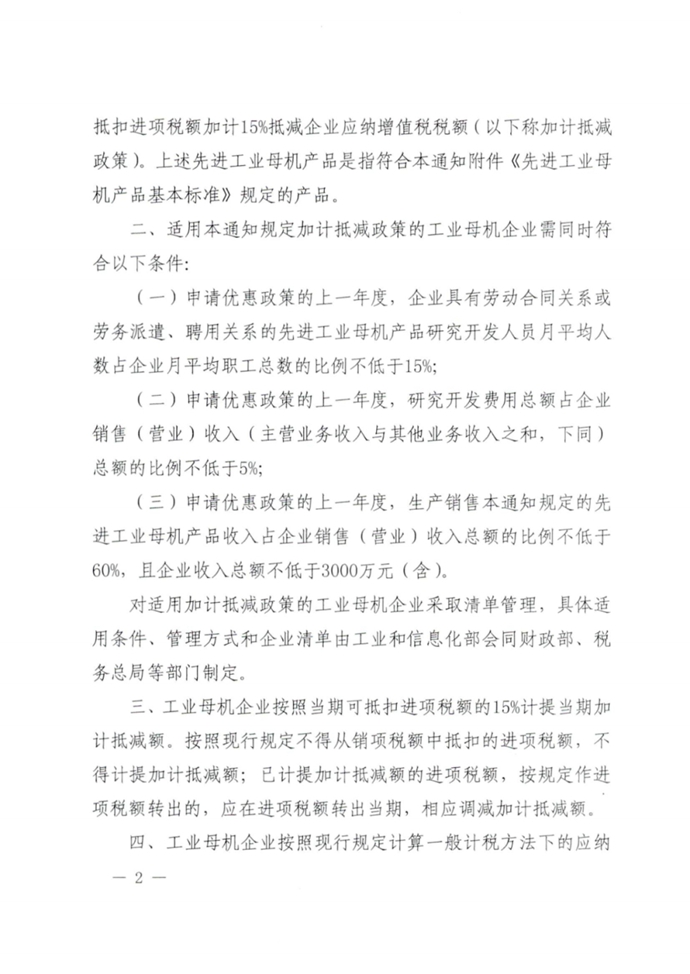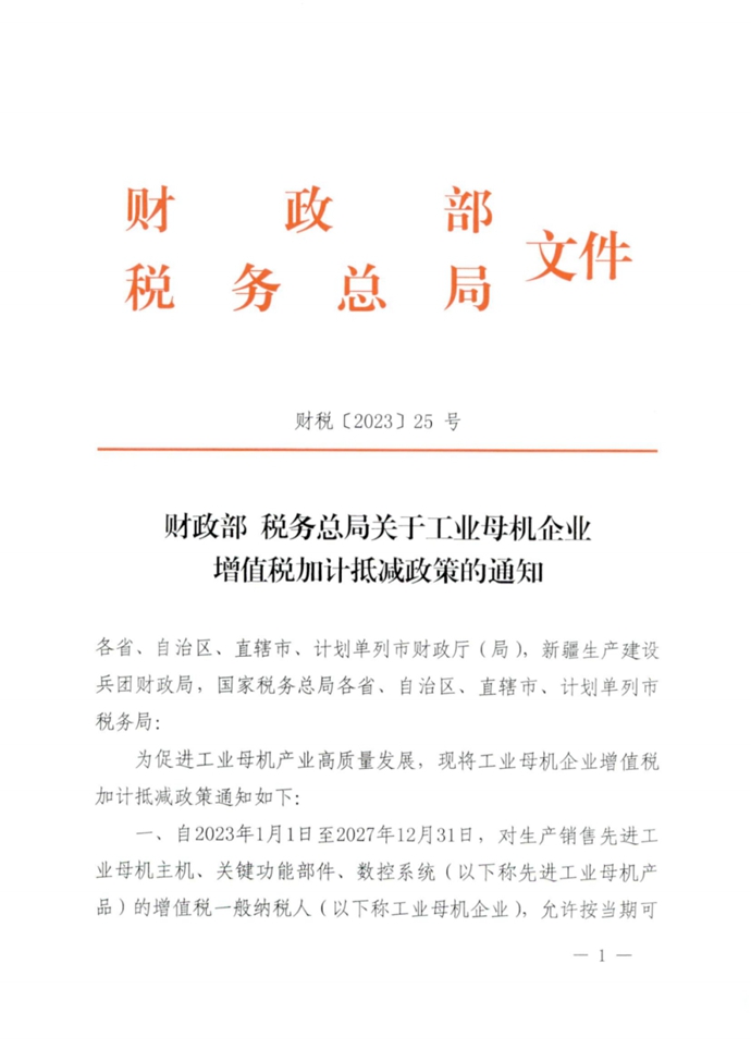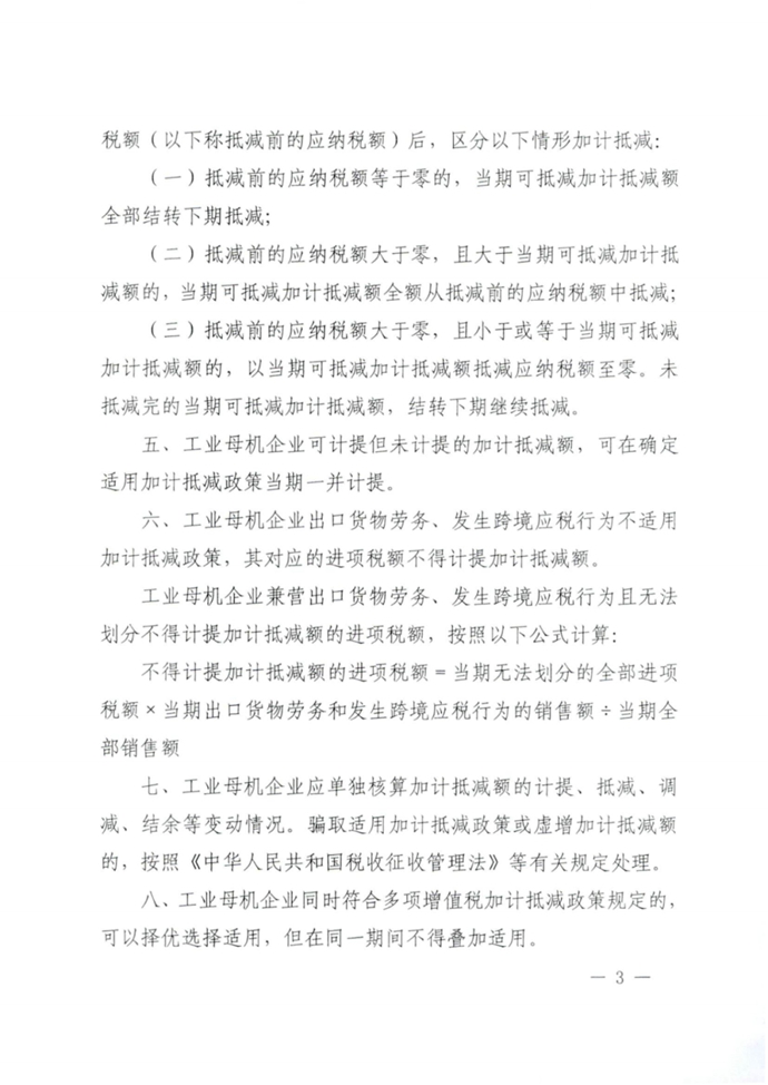 财政部 税务总局关于工业母机企业增值税加计抵减政策的通知