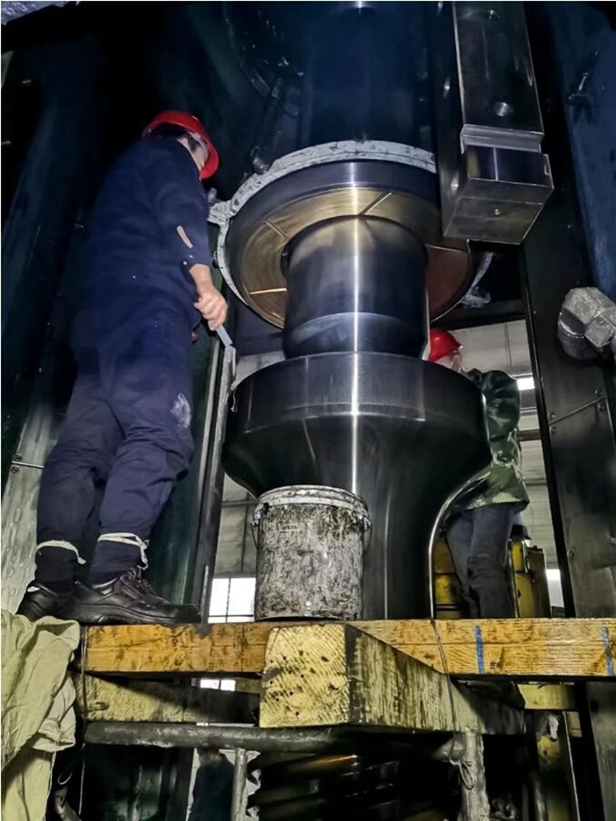 “按照以往正常的翻新方法,设备需要停机一年,意味着客户将损失近1.2亿的效益。为了充分保障客户的利益,我们通过两个创新办法,将翻修时间压缩到了仅5周。”舒勒服务销售经理孟坤介绍说。