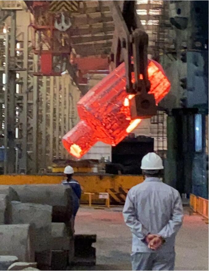 日前,随着始锻温度为1250℃的XTC02钢锭出炉,进入锻造环节,标志着马钢重机与中钢邢机重启锻件业务协同以来,继成功完成首批次75吨模具钢生产之后,150吨支撑辊订单正式投入生产。