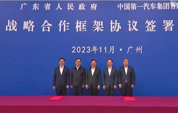 11月29日,中国一汽与广东省政府在广州签署战略合作框架协议。