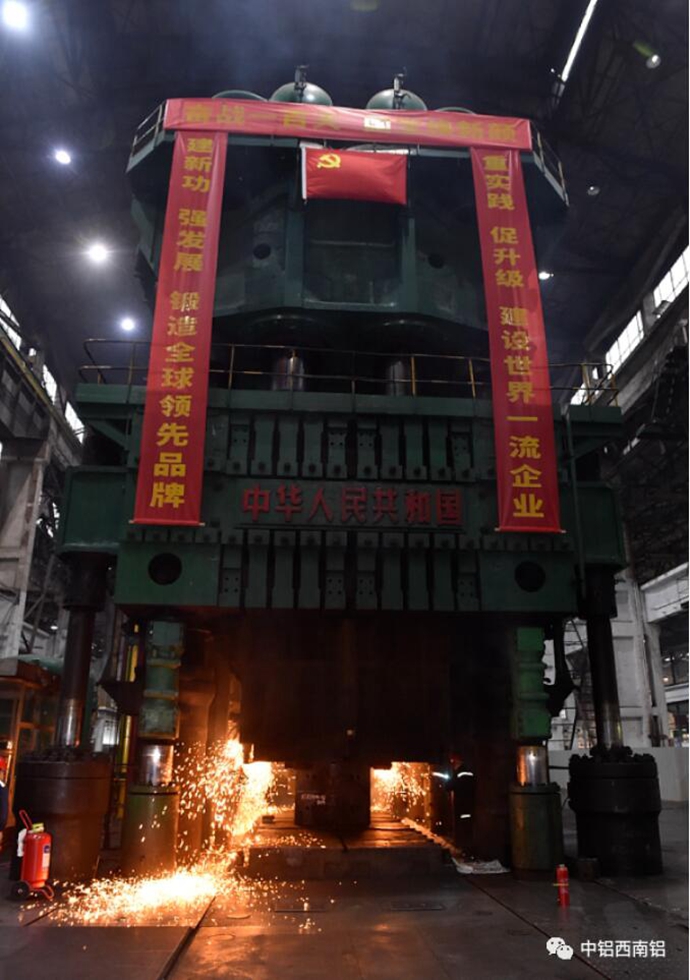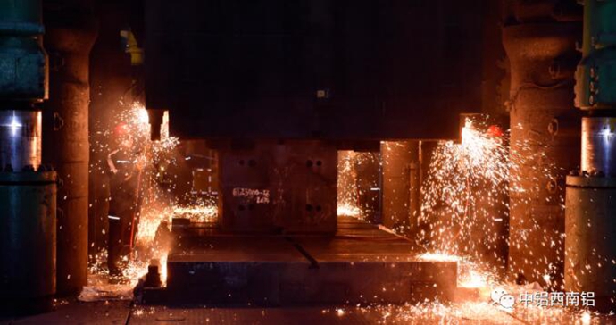 3万吨模锻水压机是我国自主设计制造的大型设备,于20世纪60年代开工建设,70年代投入生产。1977年,3万吨模锻水压机成功生产出飞机大型铝合金框架模锻件,开启了我国关键模锻件向大型化发展的奋进道路。多年来,“独立自主、自力更生”的中国工业精神在西南铝发扬光大,广大技术人员大胆探索创新,不懈攻克难关,屡屡创造佳绩,不断填补国内空白,使3万吨模锻水压机生产能力不断提高,担负起了国家重点领域所需关键配套材料保供的重任。