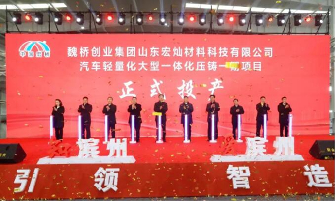 12月12日,山东宏灿材料科技有限公司汽车轻量化大型一体化压铸一期项目竣工投产仪式在惠民经济技术开发区高端铝产业园举行。