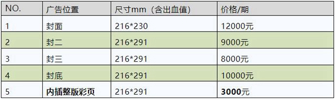 刊登广告报价