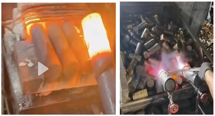 以下的加热方式有很大的改进空间,锻造已经不是过去的单纯“打铁”,应该归类于大工业生产,应用当下已经特别流行的方式。