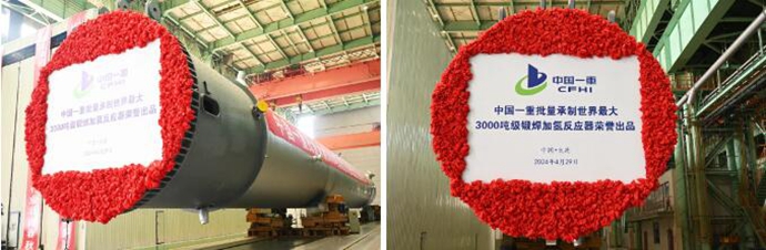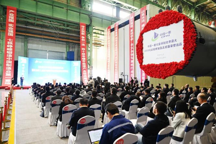 4月29日,中国一重在大连核电石化公司组织召开以“同心奋进七十载,石化新质向未来”为主题的石化重大技术装备极限制造研讨会暨世界最大3000吨级锻焊反应器批量化交付仪式。