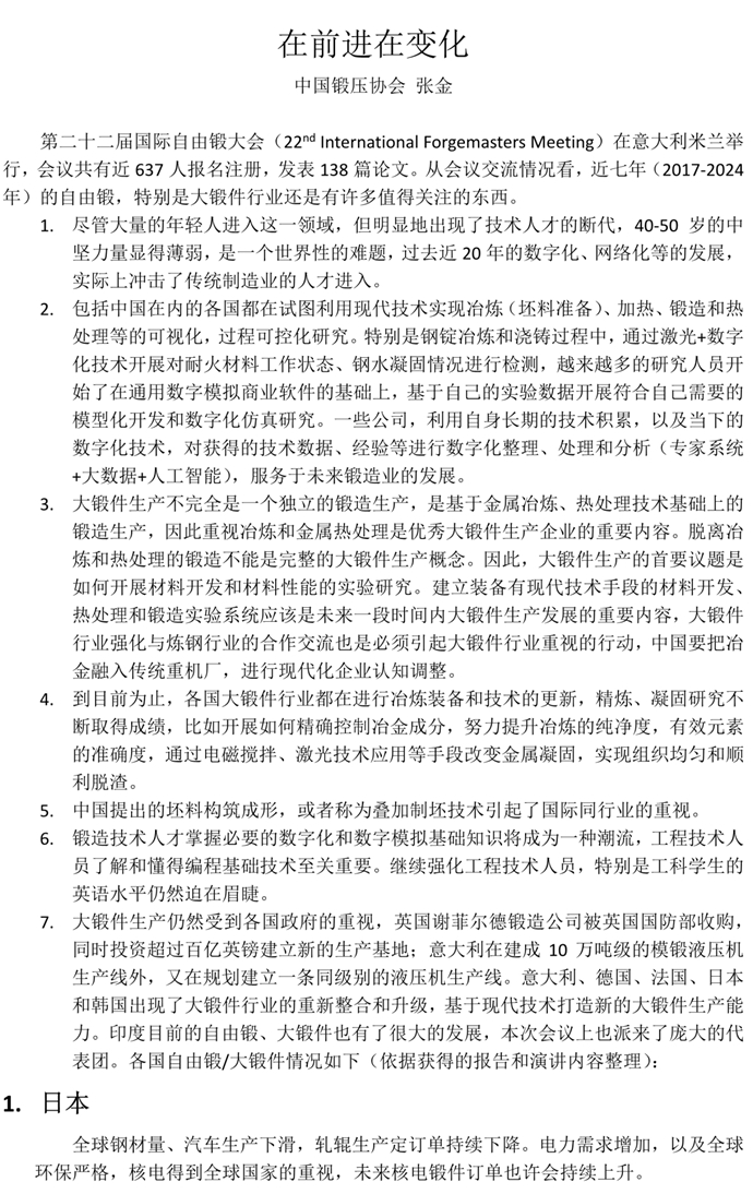 国际自由锻最新情况,在前进在变化!