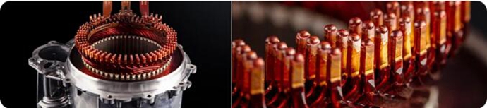◎电机部分:特斯拉定子铁芯采用近500片0.25毫米的超薄硅钢片,厚度更薄,损耗更小,发热也更少,可帮助电机提升效能超过3%。其首创的10层扁线定子,相比圆铜线,扁线可让定子内部更紧实,槽满率提升62%,发热损耗也更少。
