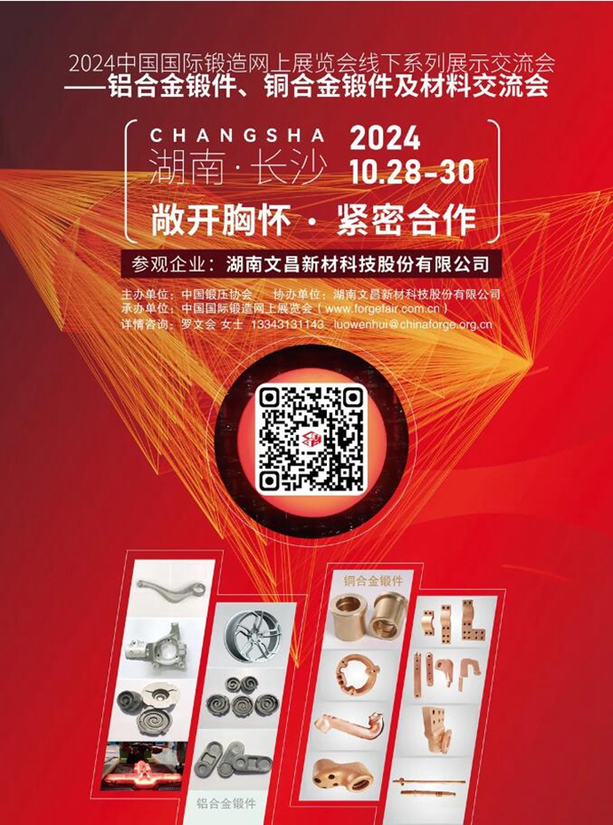 为了促进锻件行业上下游企业的紧密合作,共享市场机遇,我们诚挚邀请您参加“2024 线下系列展示交流会——铝合金、铜合金锻件及材料”。