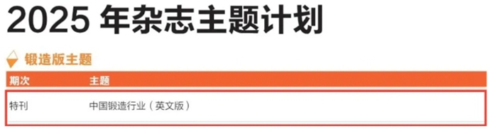 图为2025年《锻造与冲压》杂志计划截图