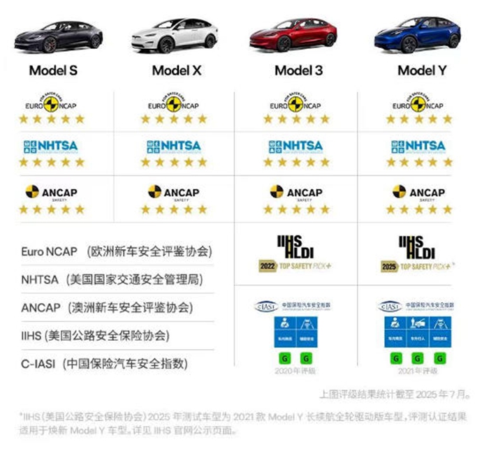 除此之外,特斯拉Model Y L为前排、二排、三排全部搭载安全气囊,整车的安全气囊保护区域总长达到了 3.9 米,可以覆盖车辆95%以上的纵向空间,在出现安全事故时,进行毫秒级响应。在车身结构上,增加底板钢梁,可以有效降低侧撞带来的侵入,全车车身刚度提升了超10%,安全性能更进一步。