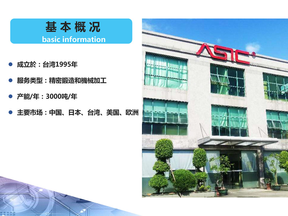 ASIC长期以来凭借着精密锻造技术和精密机械加工生产设备为许多国际知名客户OEM加工类型金属配件等。力野ASIC的优势在於不同於竞争对手而能提供全套完整的生产服务,不但替客户保证各个制成工艺的高品质要求,更可省去找寻各类型生产供应商所耗费的时间成本。