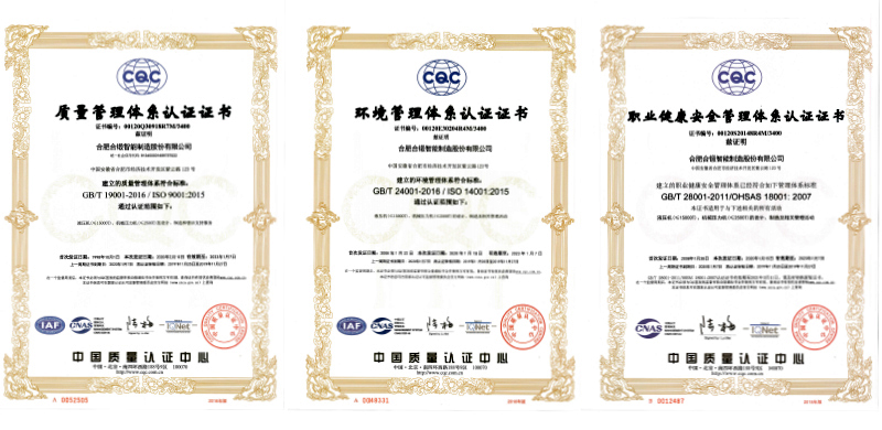 合锻智能从1998年起,在行业内已率先陆续通过了ISO9001/ISO14001 /OHSAS18001“三合一”管理体系认证,并定期审核和换版,保证体系的有效性和符合性。