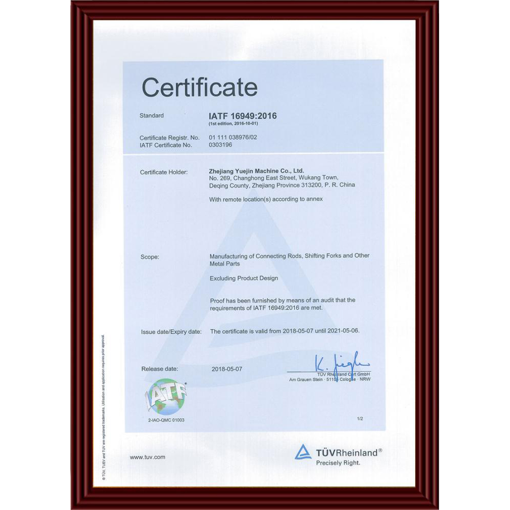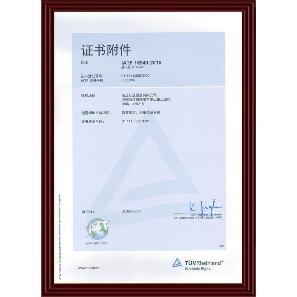 IATF 16949 体系认证证书-中文附件