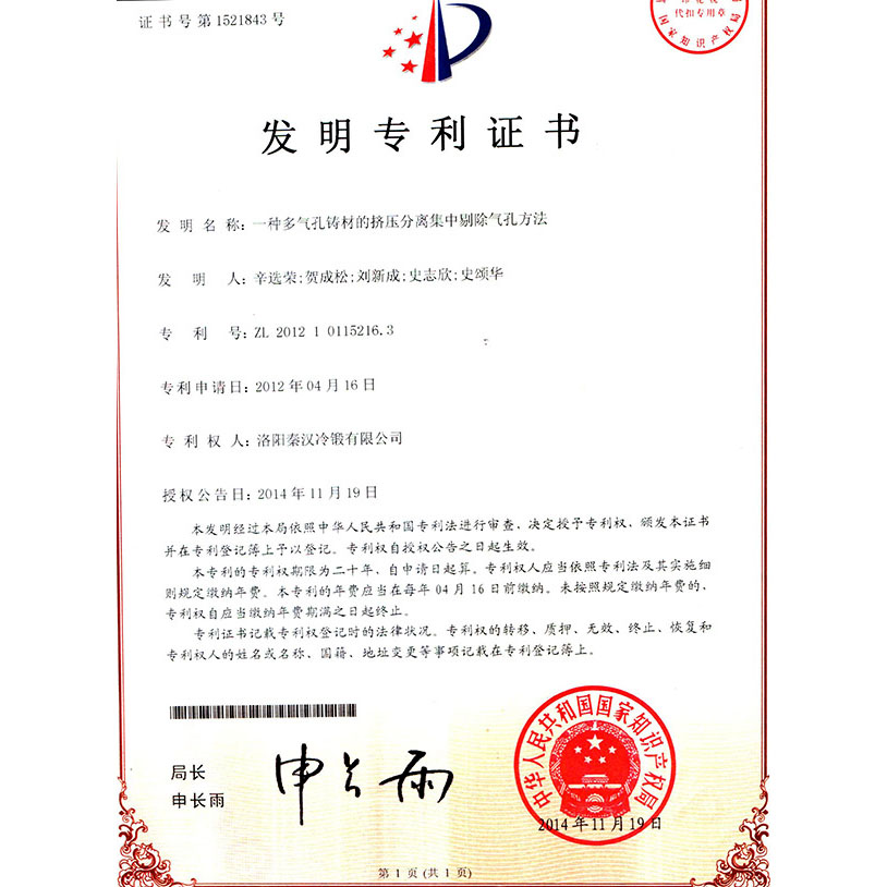 一种多气孔铸材的挤压分离集中剔除气孔方法专利证书