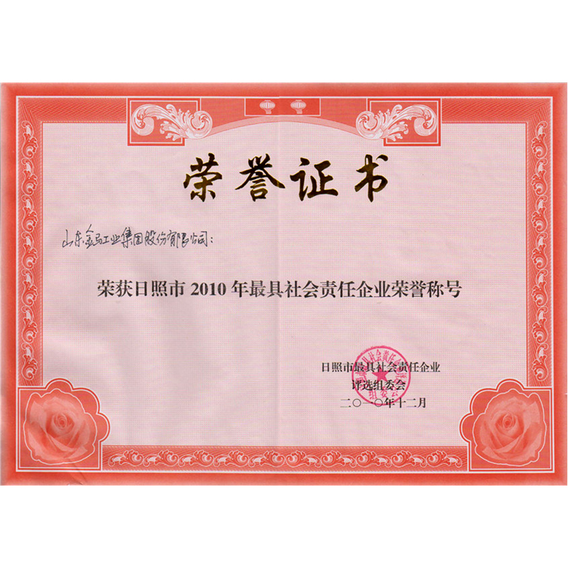 日照市最具社会责任企业荣誉称号