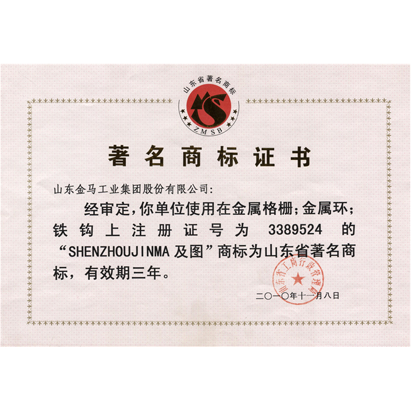 著名商标证书