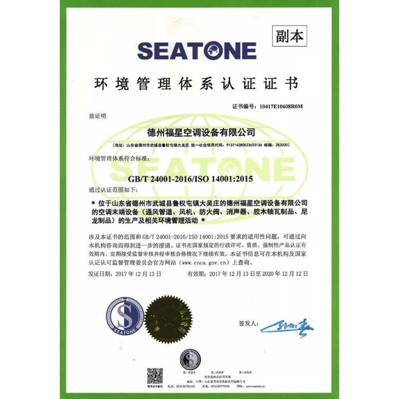 GB/T 24001环境管理体系认证证书