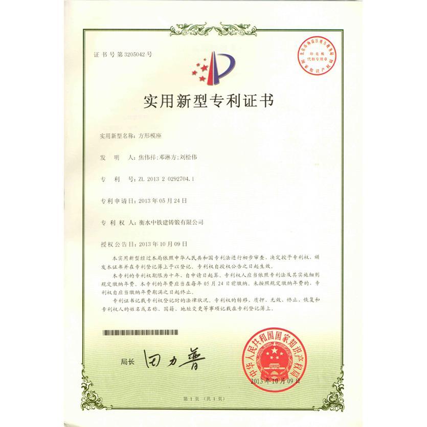 方形模座实用新型专利证书
