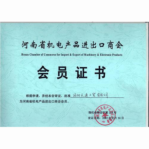 河南进出口商会证书