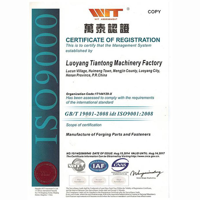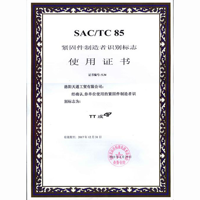 中国紧固件制造标志证书