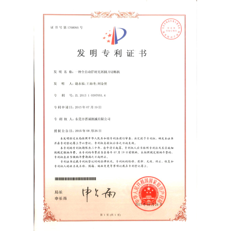 一种全自动管材无屑圆刀切断机发明专利