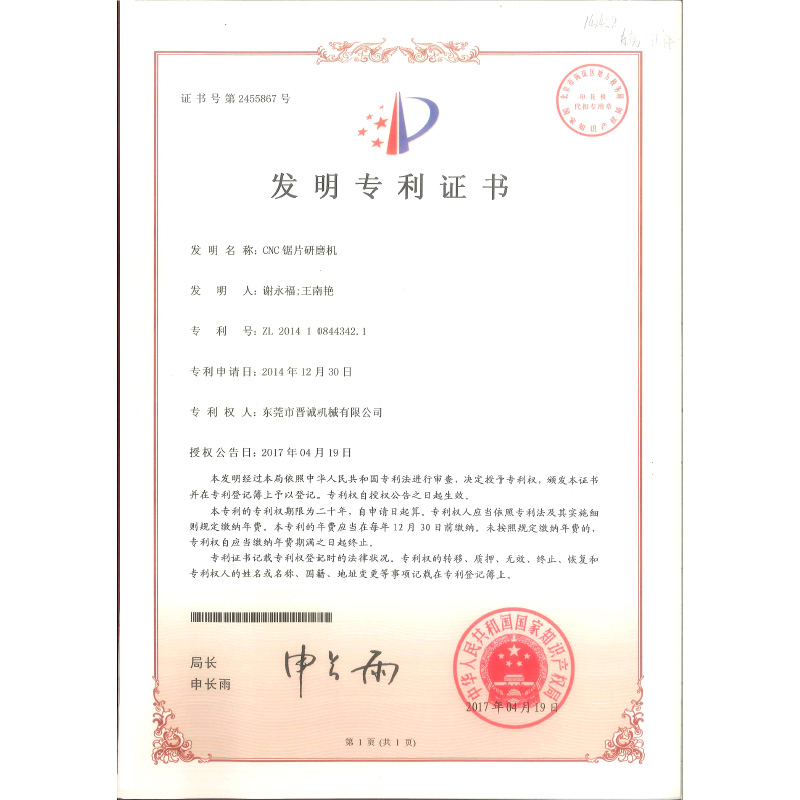 CNC锯片研磨机发明专利