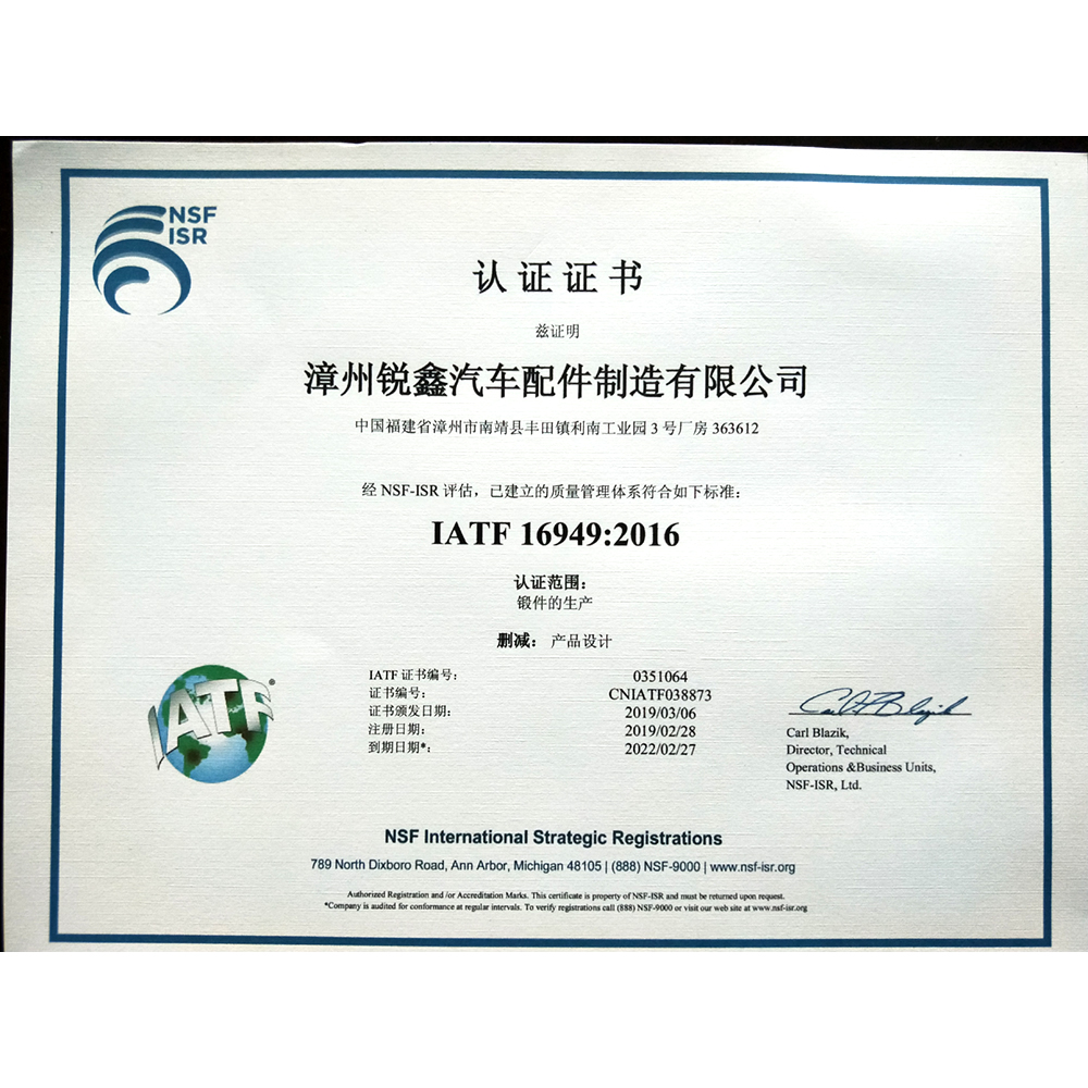 IATF 16949:2016中文证书