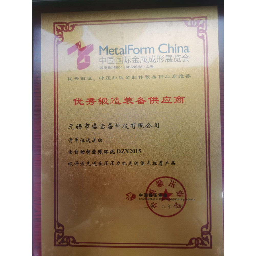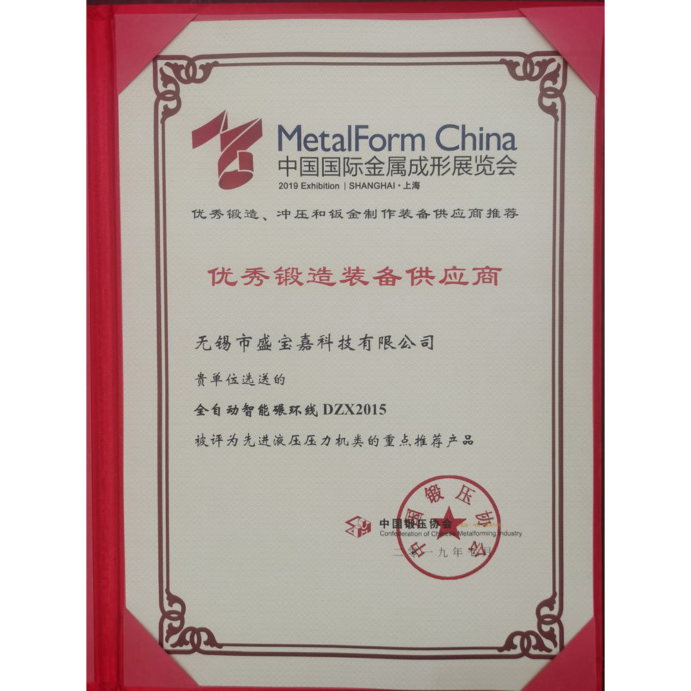 2019优秀锻造装备供应商证书