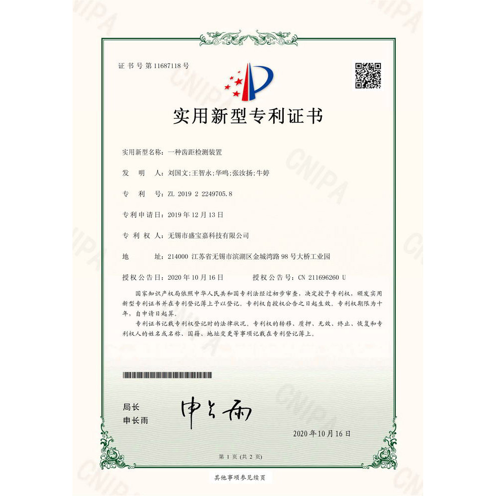 实用新型专利证书-(一种齿距检测装置)