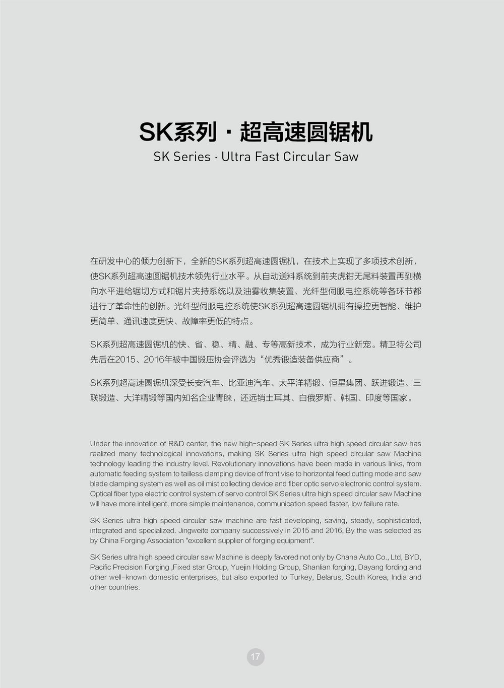 S系列金属圆锯机的快、省、稳、精、融、专等高新技术,成为行业新宠。精卫特公司先后在2015、2016年被 评选为“优秀锻造装备供应商”。